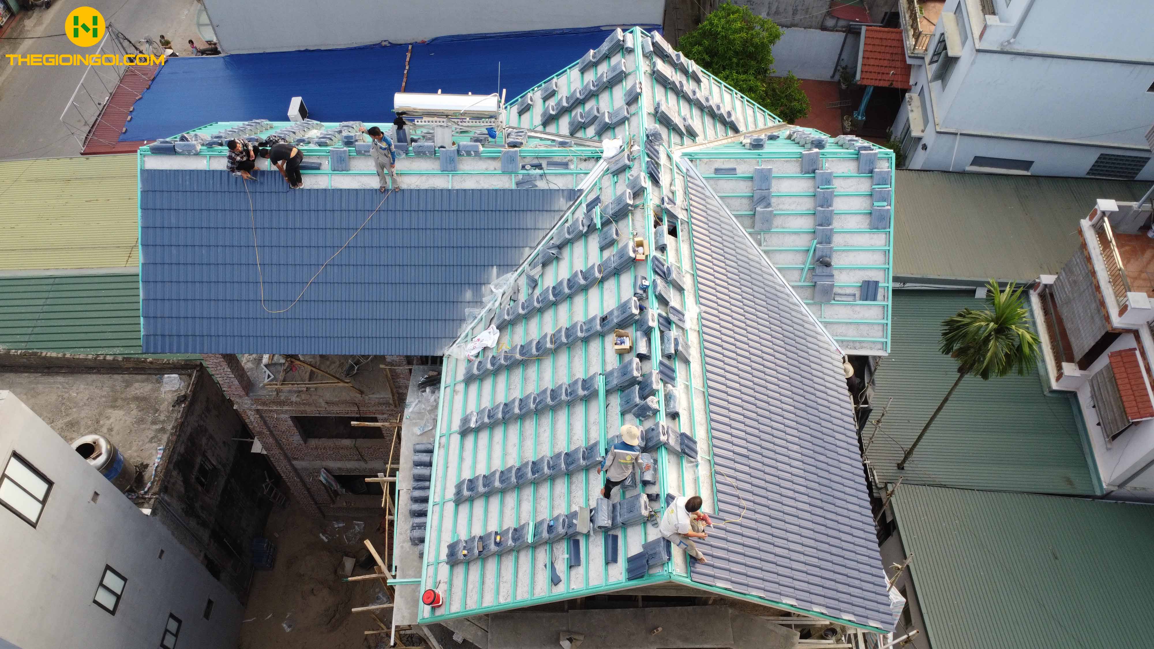 Lợp ngói mái Thái tại Long Biên | Ngói Romantic màu xanh biển sâu | Khung thép nhẹ