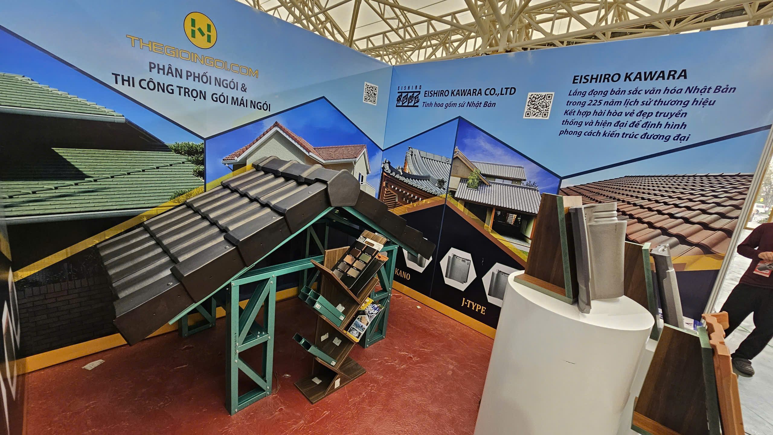 Điểm nhấn lớn nhất tại gian hàng chính là sự xuất hiện của dòng ngói cao cấp Eishiro – sản phẩm đang được đánh giá cao trong phân khúc mái ngói chất lượng cao.